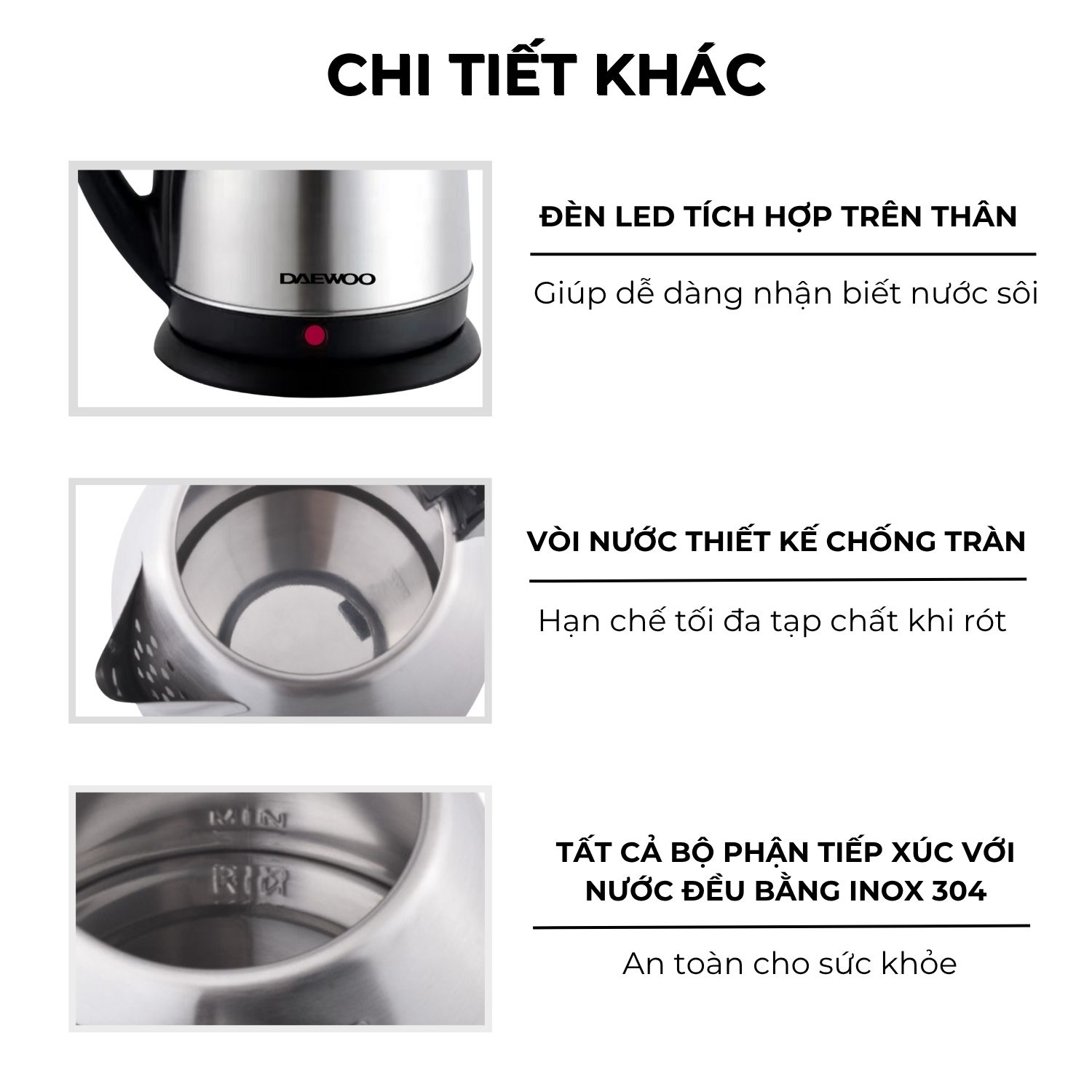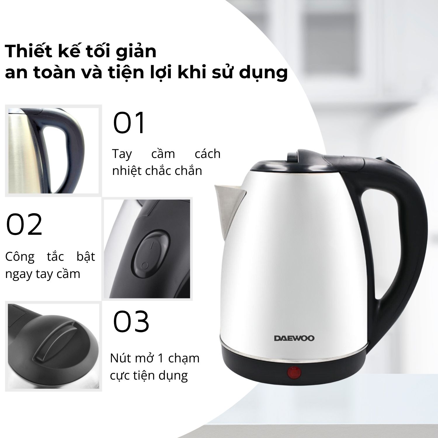 Ấm siêu tốc là sản phẩm tiện lợi không thể thiếu tại các gia đình hiện nay. Chỉ trong vài phút, bạn đã có được nước nóng để sử dụng trong sinh hoạt hàng ngày như pha trà, cafe,... Hơn nữa, bạn có thể đun một chút nước đủ dùng thay vì phải đun nhiều nước như kiểu ấm điện truyền thống. Đây cũng chính là một trong những ưu điểm vượt trội của ấm đun siêu tốc Daewoo.