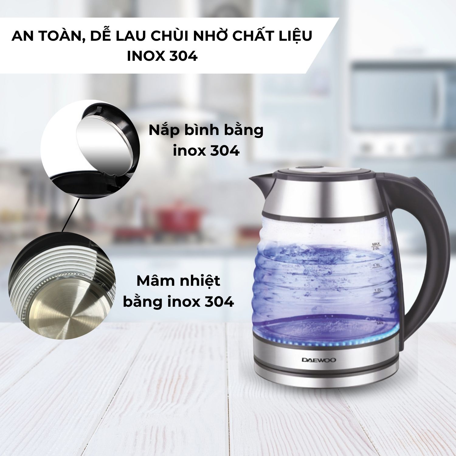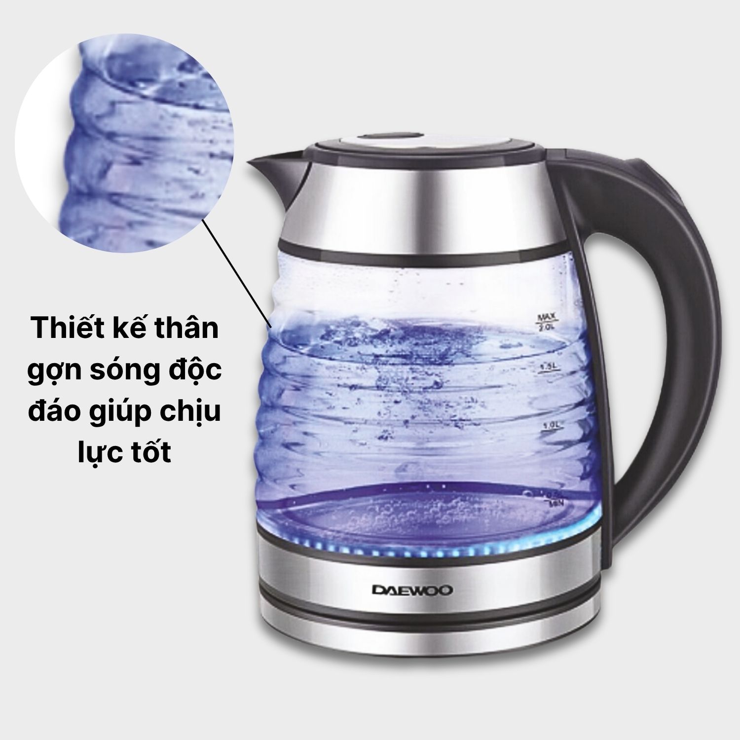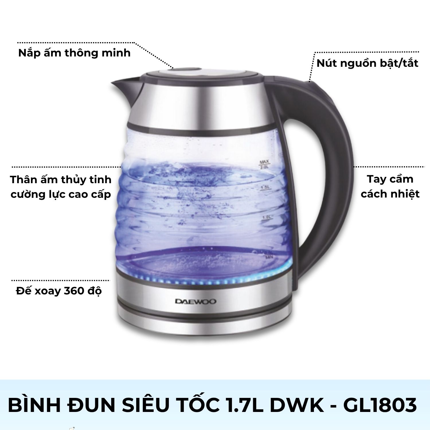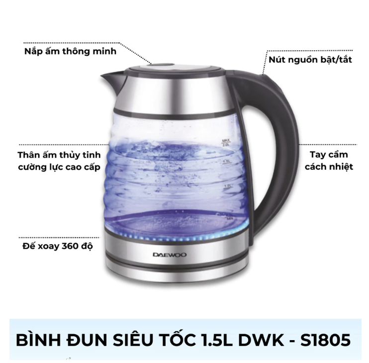 ĐẶC ĐIỂM NỔI BẬT BÌNH ĐUN NƯỚC THỦY TINH DWK-GL1803