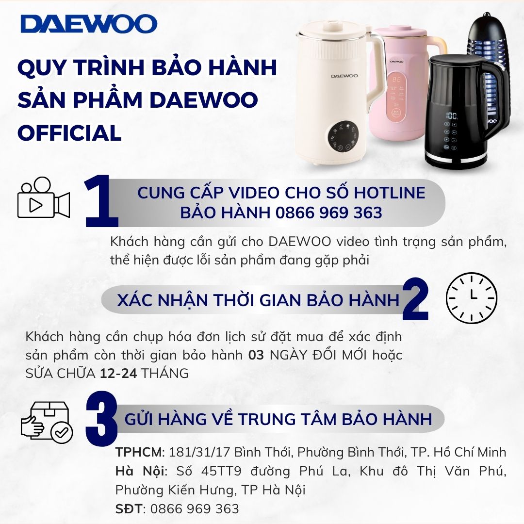 DAEWOO VIET NAM gửi đến quý khách hàng chính sách bảo hành và đổi trả sản phẩm: